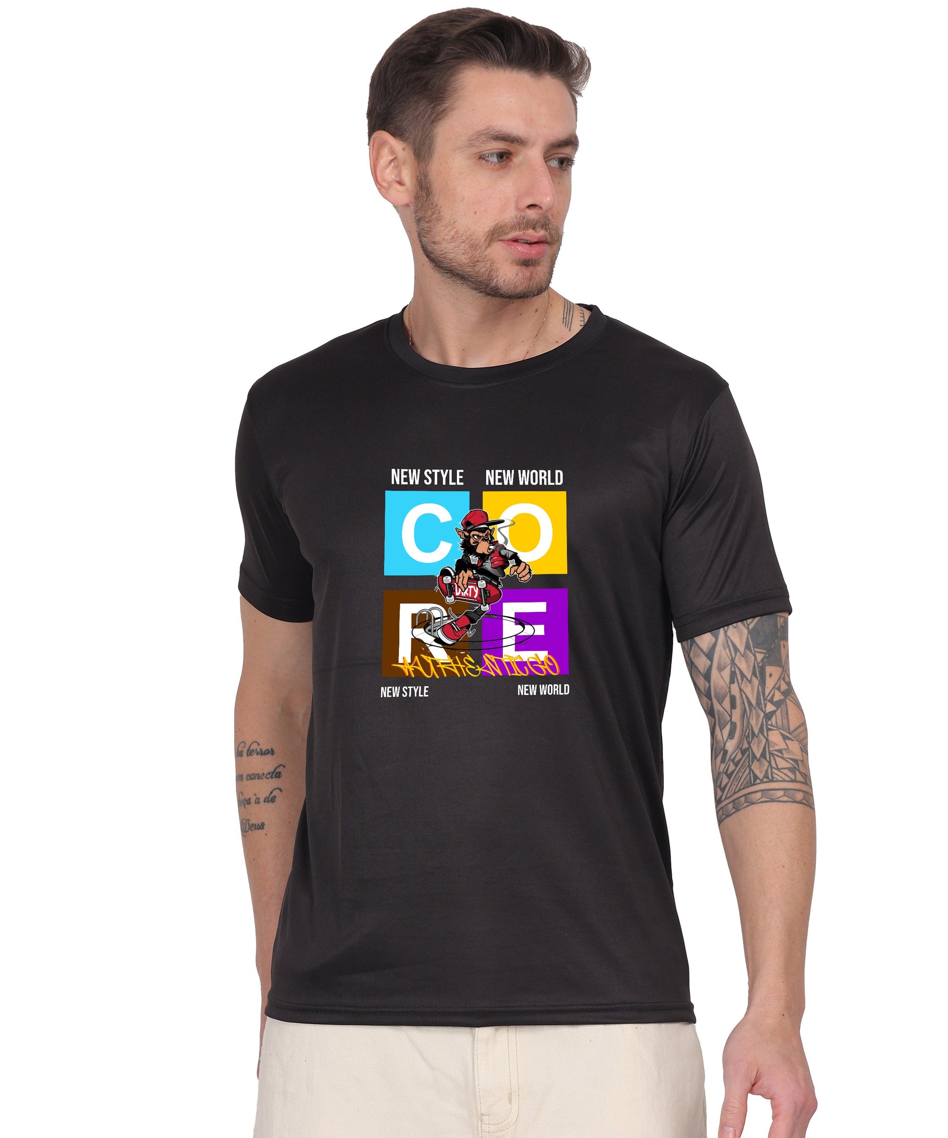 Generic New Style New World Monkey Graphic Cotton T-Shirt, Black, Regular Fit, Short Sleeve, Crew Neck